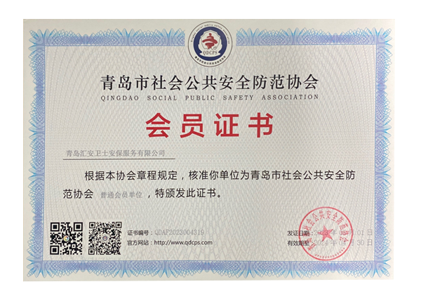 社會(huì)公共安全防范協(xié)會(huì)會(huì)員證書